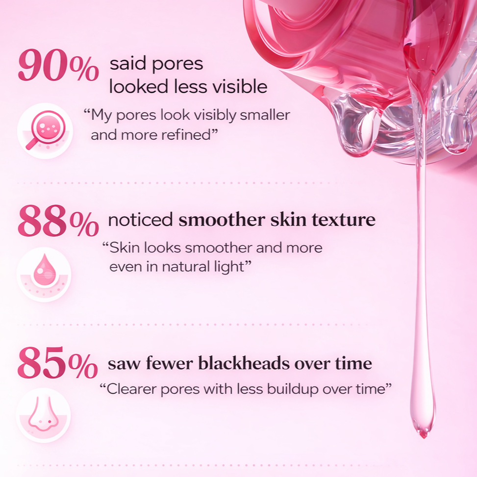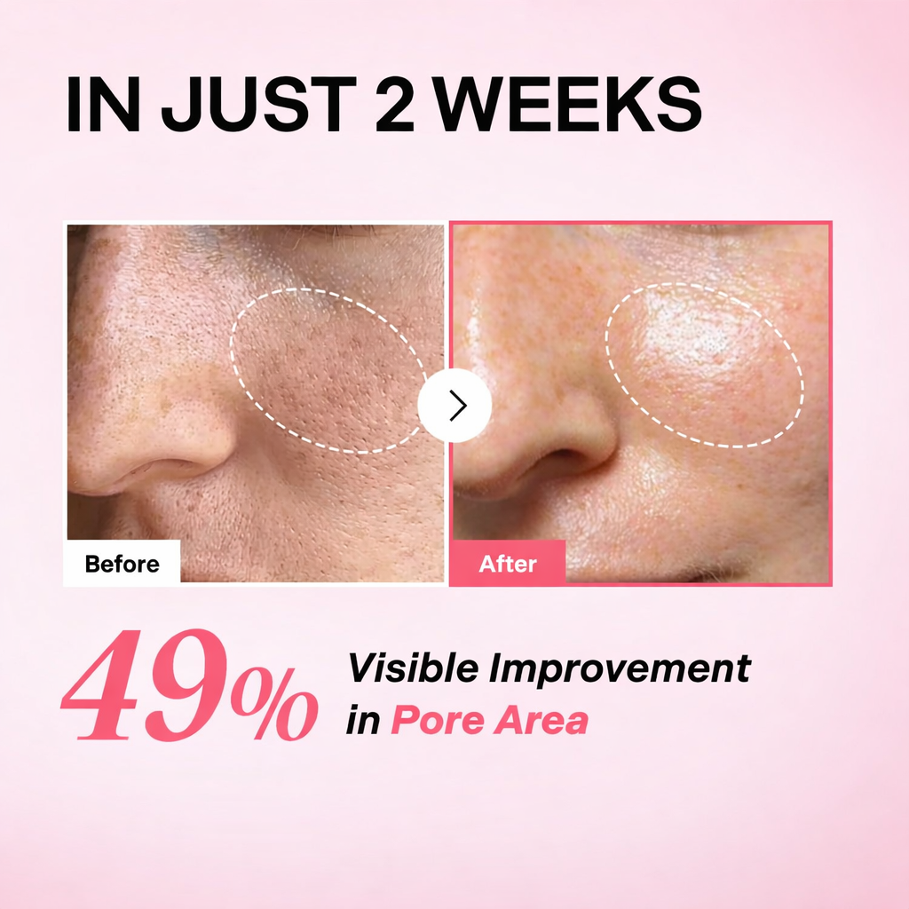 It doesn’t permanently shrink pores, but it clears buildup and minimizes their appearance — so they look cleaner and less visible.