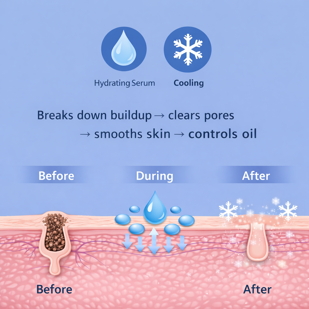 It breaks down trapped oil and dead skin buildup, while also smoothing the surface — so your skin doesn’t just feel clean, it actually looks clean.